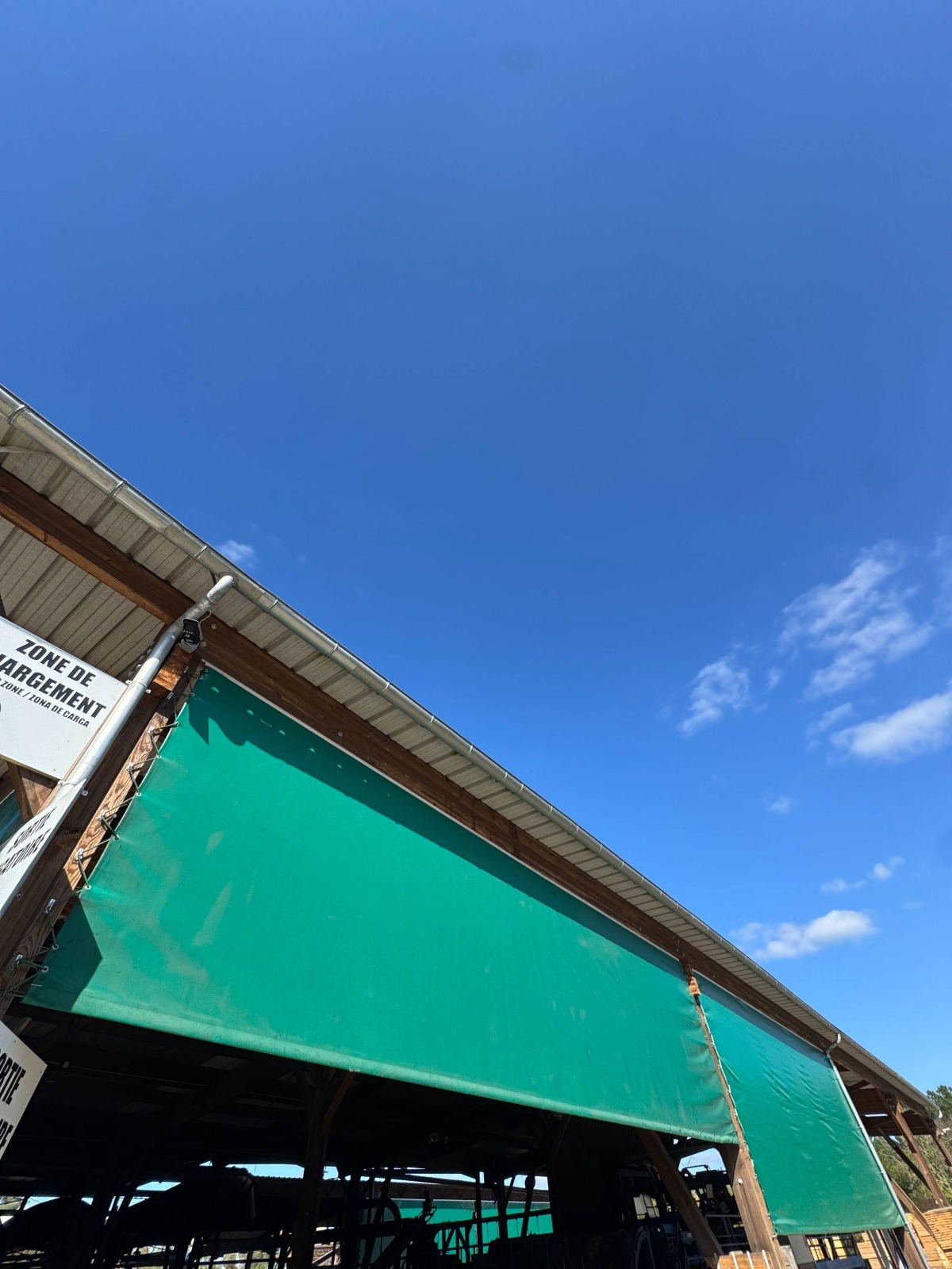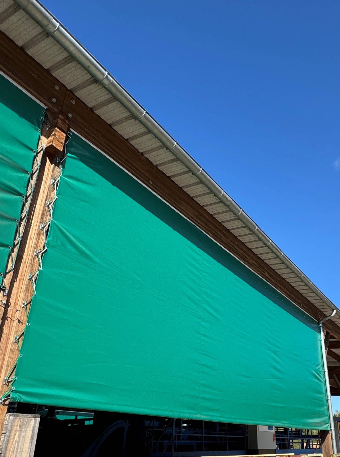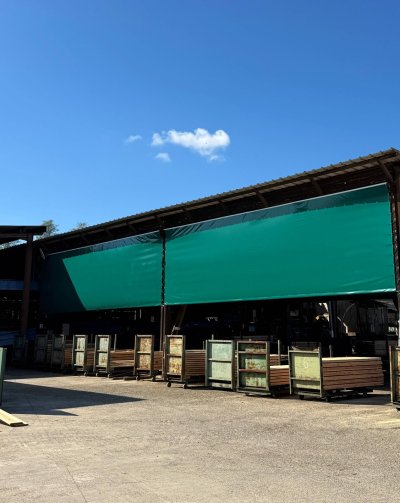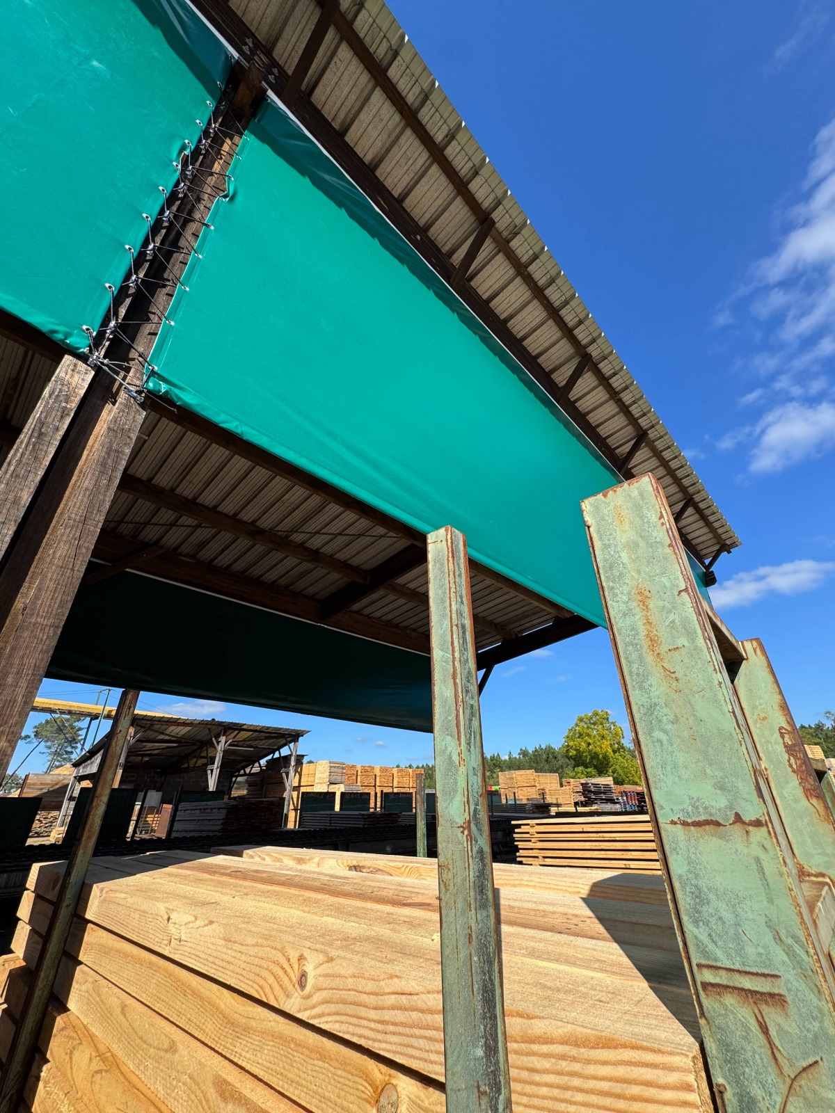 Nous avons procédé à la pose de 6 bâches d’ombrage industrielles, spécialement conçues pour les environnements extérieurs et installées sur nos bâtiments existants, en parfaite adéquation avec nos besoins opérationnels.